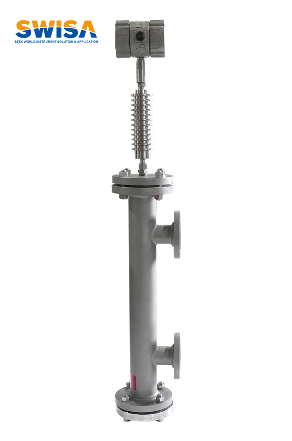 3.順浮筒方向?qū)⒁何挥?jì)探桿放入浮筒內(nèi),緊固頂部法蘭;