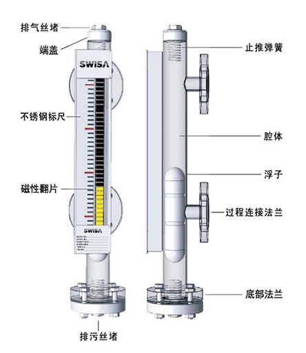SPI磁翻板液位計采用模塊化設計,結構簡單,由三部分組成: